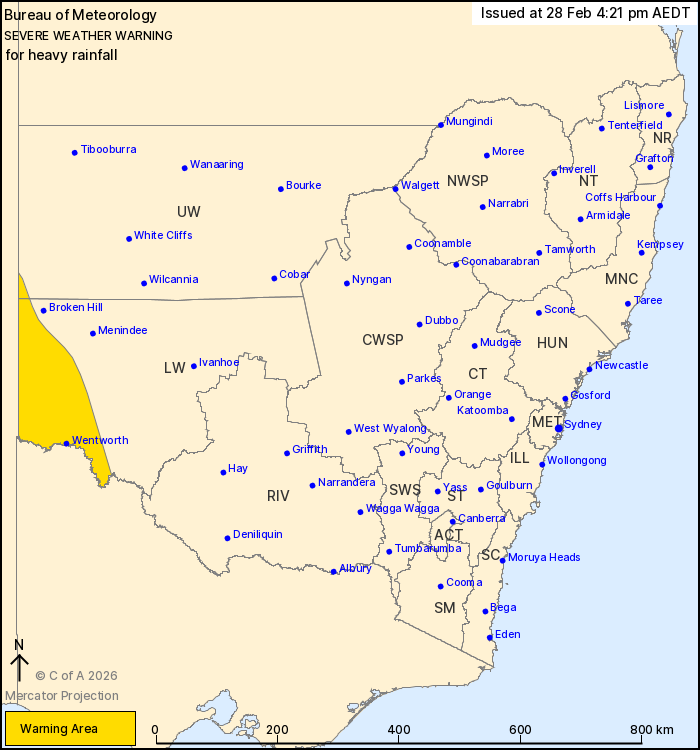 Check https://www.bom.gov.au/weather-and-climate/warnings-and-alerts. Warnings are also available through TV and Radio broadcasts or call 1300 659 210. The Bureau and State Emergency Service would appreciate warnings being broadcast regularly.