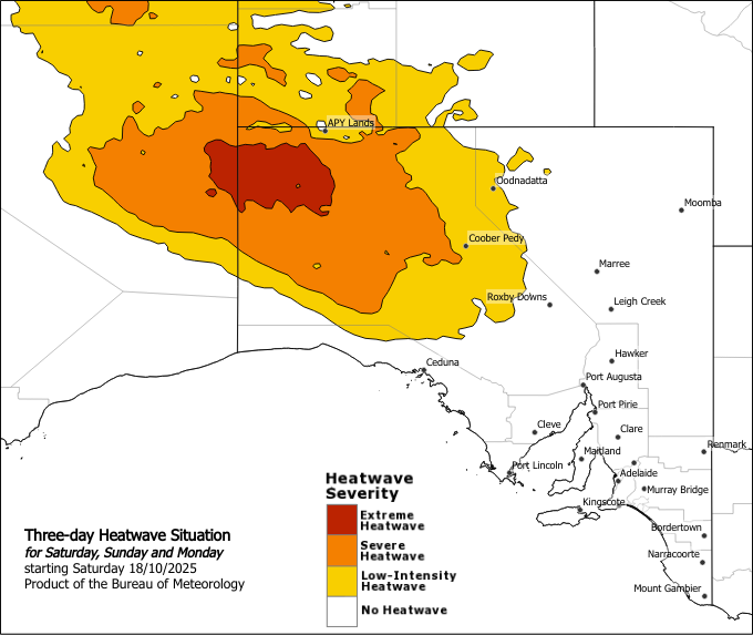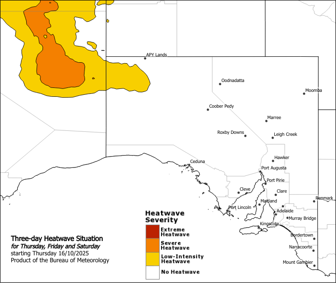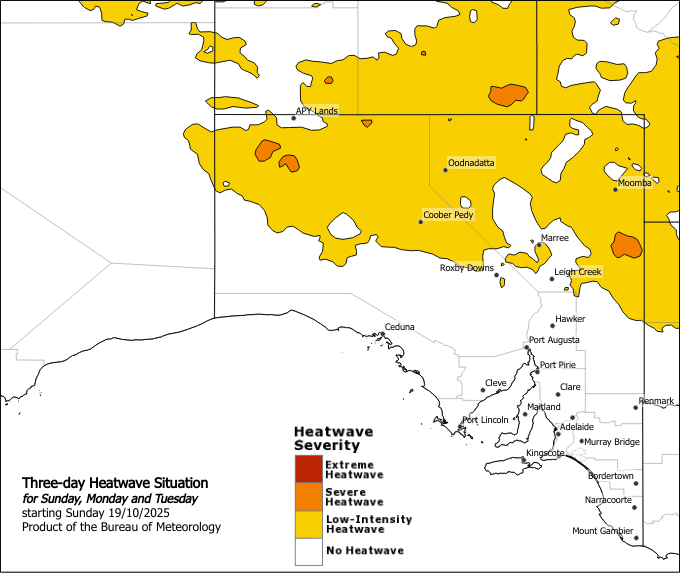 The next heatwave warning will be issued by 3:00pm CDT on Sunday 19 October 2025