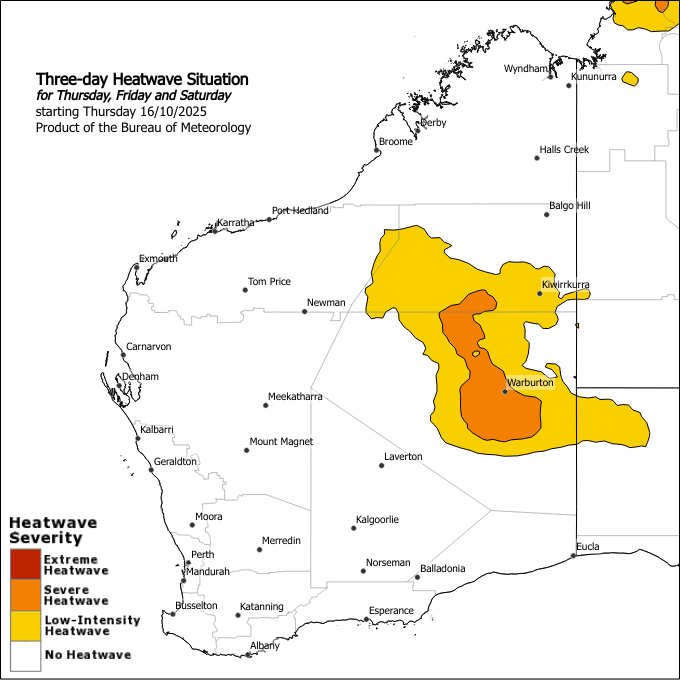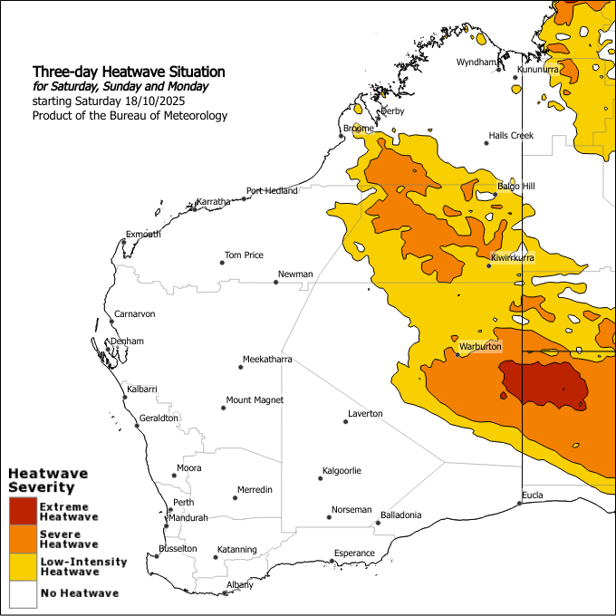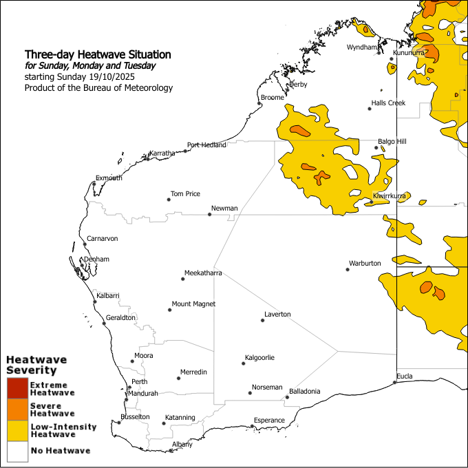The next heatwave warning will be issued by 2:00pm WST on Sunday 19 October 2025