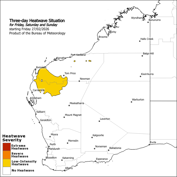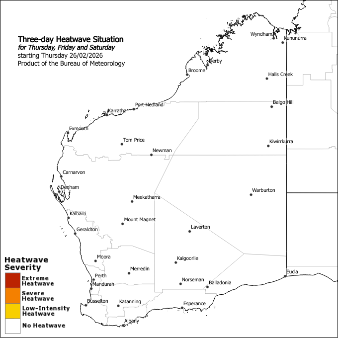 The next heatwave warning will be issued by 2:00pm WST on Sunday 01 March 2026